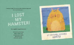My snuggable, huggable hamster! And YOU have to help me find it. You’ll recognize its paddy paws, it’s sniffle snoot, and it’s sweet, sparkly eyes…